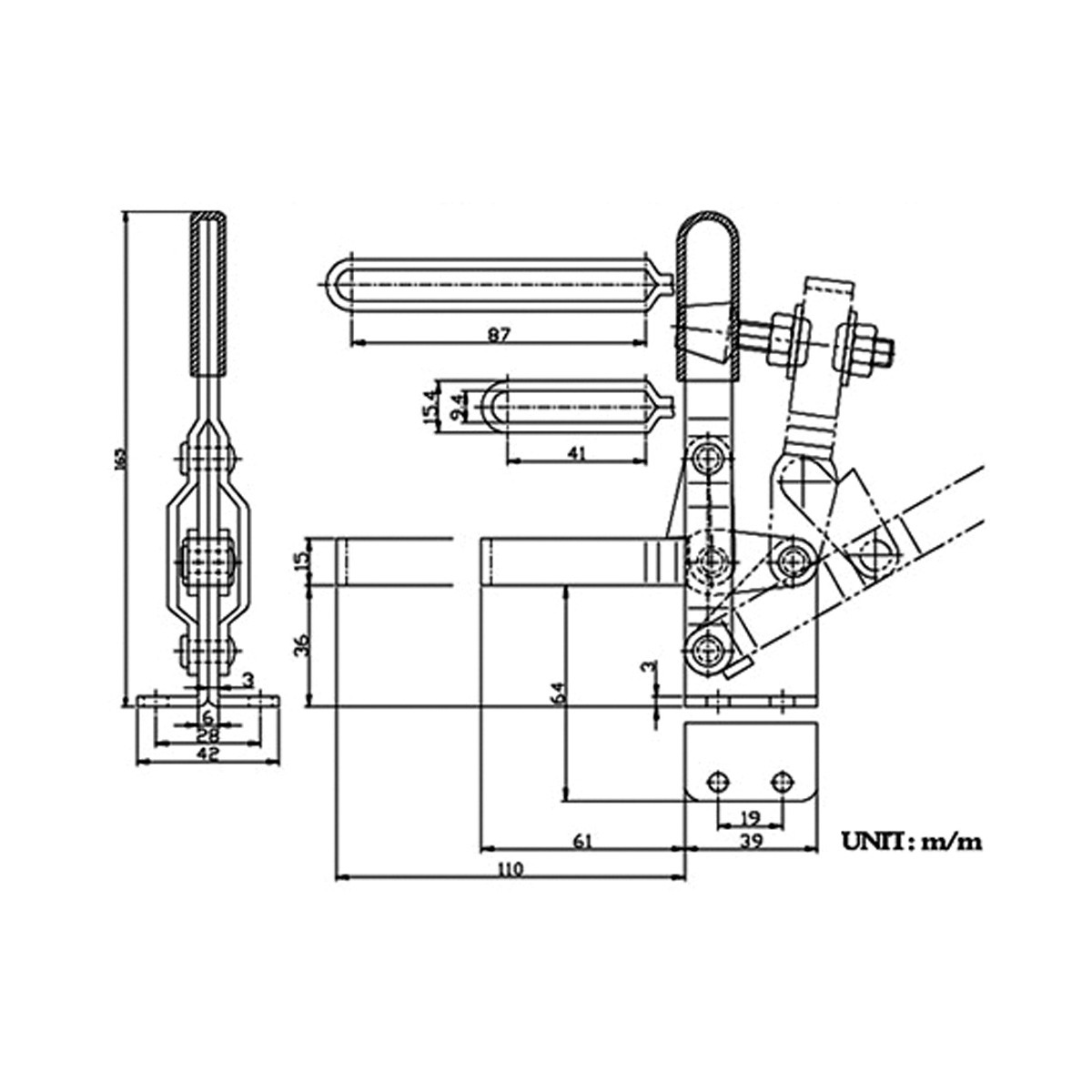 VERTICAL TOGGLE CLAMP U BAR FLANGED BASE 800 LBS Capacity 3900-0334