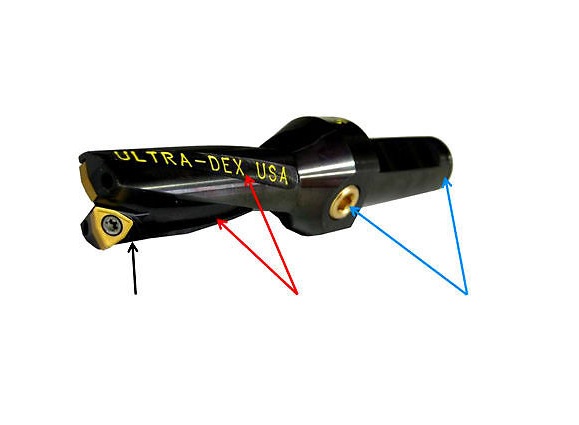 Steel 4xD Indexable Drill with a 1.687″ Diameter 6.820″ Drill Depth 1.250″ Shank Length to hold (2) WCMX 32.52 Coolant Thru