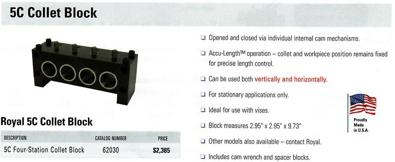 > Royal 5C Collet Block Accu Length Operation USA Made 62030