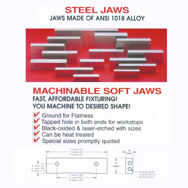 Snap Jaws 6" 2 X 2 MACHINEABLE STEEL Quick Change Vise Jaws for 6" Kurt 6MSJ-2X2