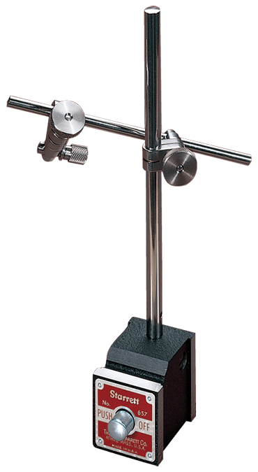 ¡Magnetic Base Indicator Holder ¡Large 1-15/16" x 1-5/8" x 1-7/8" base ¡3 Precision ground magnetic contact surfaces ¡Grips horizontally, vertically or upside down ¡V-Step holds base to arbors, shafts, & chucks ¡Push button on/off switch ¡Extra 1/4-20 tapped hole in one side of base for mounting post