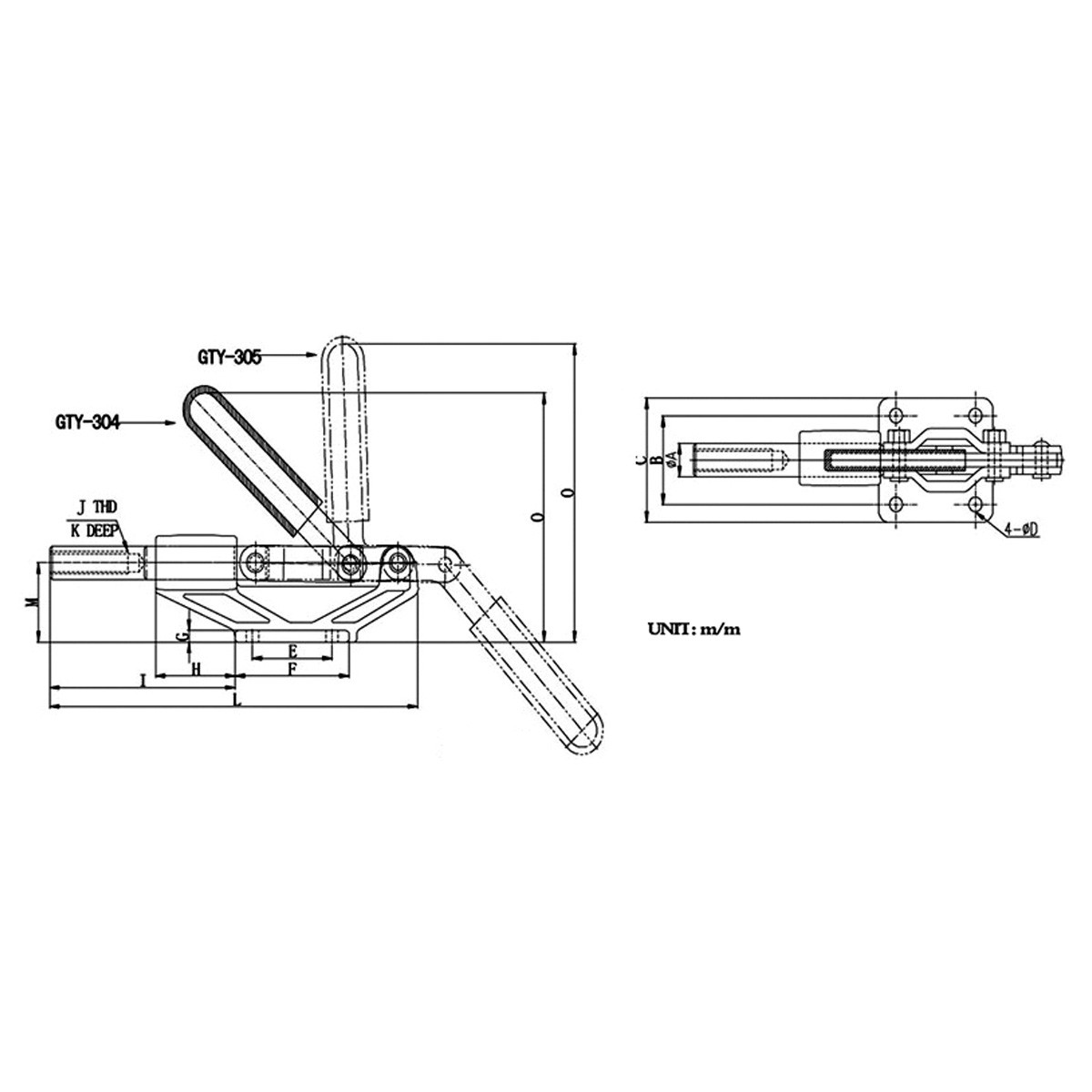 STRAIGHT LINE PUSH PULL ACTION TOGGLE CLAMP 45 DEG. With HANDLE & IRON BASE 800 LBS CAPACITY 3900-0390