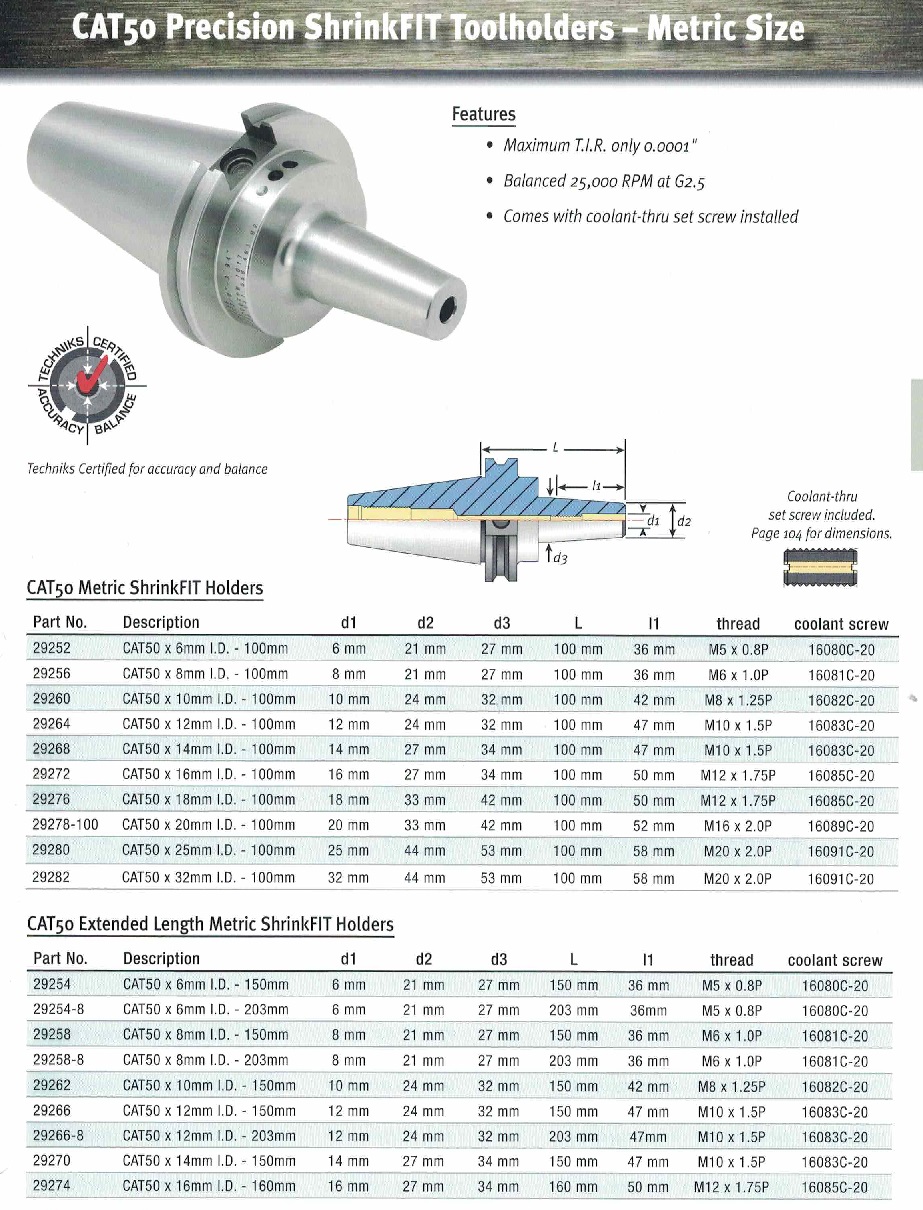 Techniks CT50 Metric 6mm ShrinkFIT End Mill Holder 29252