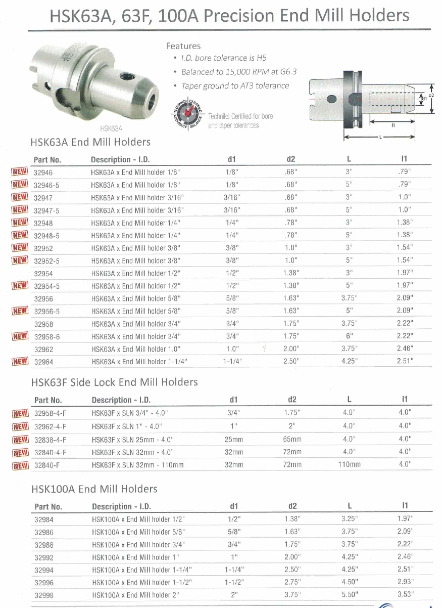 > Techniks HSK63A 1/8 End Mill Holder 3" 32946